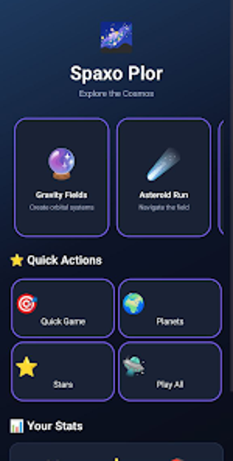 Spaxo Plor to interaktywna aplikacja do eksploracji kosmosu, łącząca symulacje fizyczne z wyzwaniami arcade i edukacyjnymi treściami. Użytkownicy mogą badać prawa grawitacji, testować refleksy w trudnych asteroidowych trasach oraz poszerzać wiedzę o wszechświecie. Aplikacja oferuje unikalne połączenie kreatywności, dokładności naukowej i angażujących mechanik, idealna dla tych, którzy pragną uczyć się przez eksperymenty i gry.